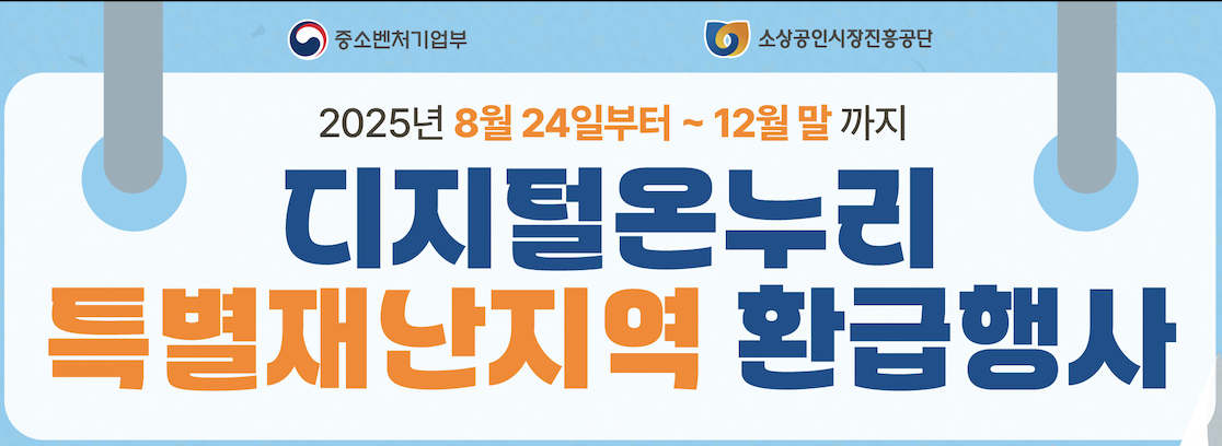 - 이벤트명: 디지털 온누리상품권 특별재난지역 8월 24일~12월 환급 EVENT!